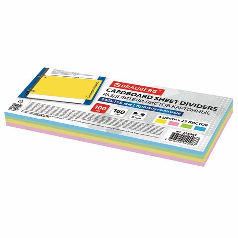 Разделители листов (полосы 240х105 мм) картонные, КОМПЛЕКТ 100 штук, ассорти, BRAUBERG, 225967