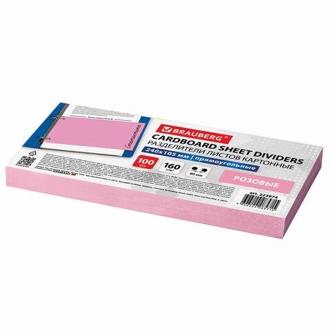 Разделители листов (полосы 240х105 мм) картонные, КОМПЛЕКТ 100 штук, розовые, BRAUBERG, 223974