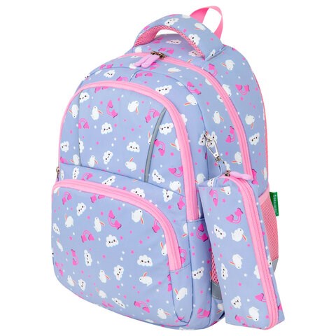 Рюкзак BRAUBERG KIDS SET, с пеналом в комплекте, 2 отделения, "Rainbow clouds", 37x28x16 см, 272100