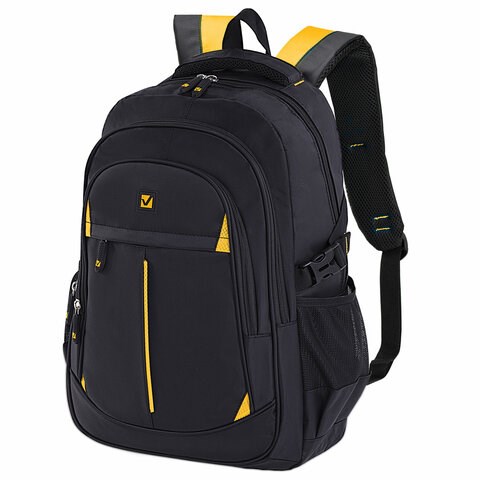Рюкзак BRAUBERG TITANIUM универсальный, 3 отделения, черный, желтые вставки, 45х28х18 см, 224385