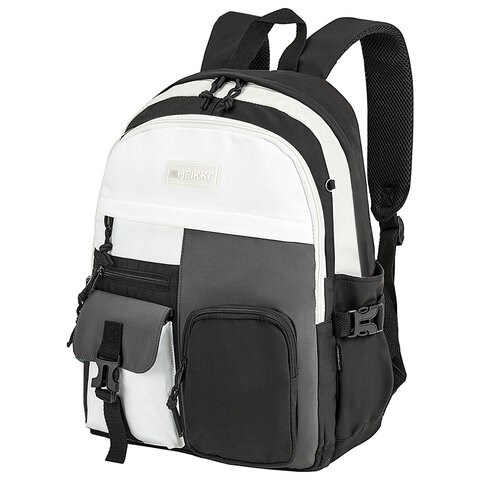 Рюкзак HEIKKI BLOCKS (ХЕЙКИ) универсальный, 2 отделения, черный/серый/белый, 44х32х17 см, 272563