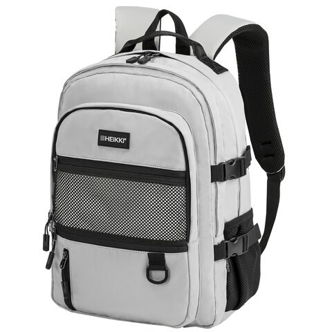 Рюкзак HEIKKI TRILL (ХЕЙКИ) универсальный, 3 отделения, серый с черными вставками, 43х31х14 см, 272586