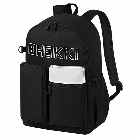 Рюкзак HEIKKI UNIQUE (ХЕЙКИ) универсальный, 6 карманов, черный с белыми вставками, 42х29х16 см, 272585