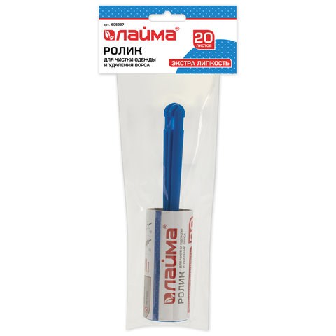Ролик для чистки одежды и удаления ворса LAIMA, 20 листов, экстра липкость, европодвес, 605397