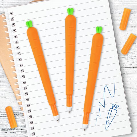 )Шариковая ручка ЮНЛАНДИЯ «Морковка» с мягким силиконовым корпусом.
