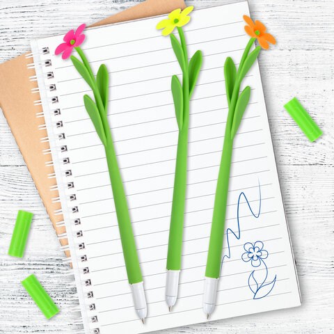 Ручка фигурная шариковая ЮНЛАНДИЯ "Цветочек", мягкий силиконовый корпус, ассорти, СИНЯЯ, пишущий узел 0,7 мм, 143779