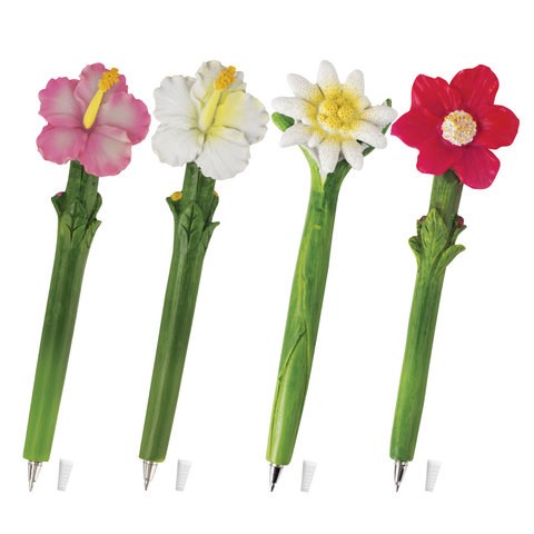 Ручка фигурная "ЦВЕТОЧКИ", СИНЯЯ, 4 дизайна ассорти, линия письма 0,5 мм, дисплей, BRAUBERG, 142775