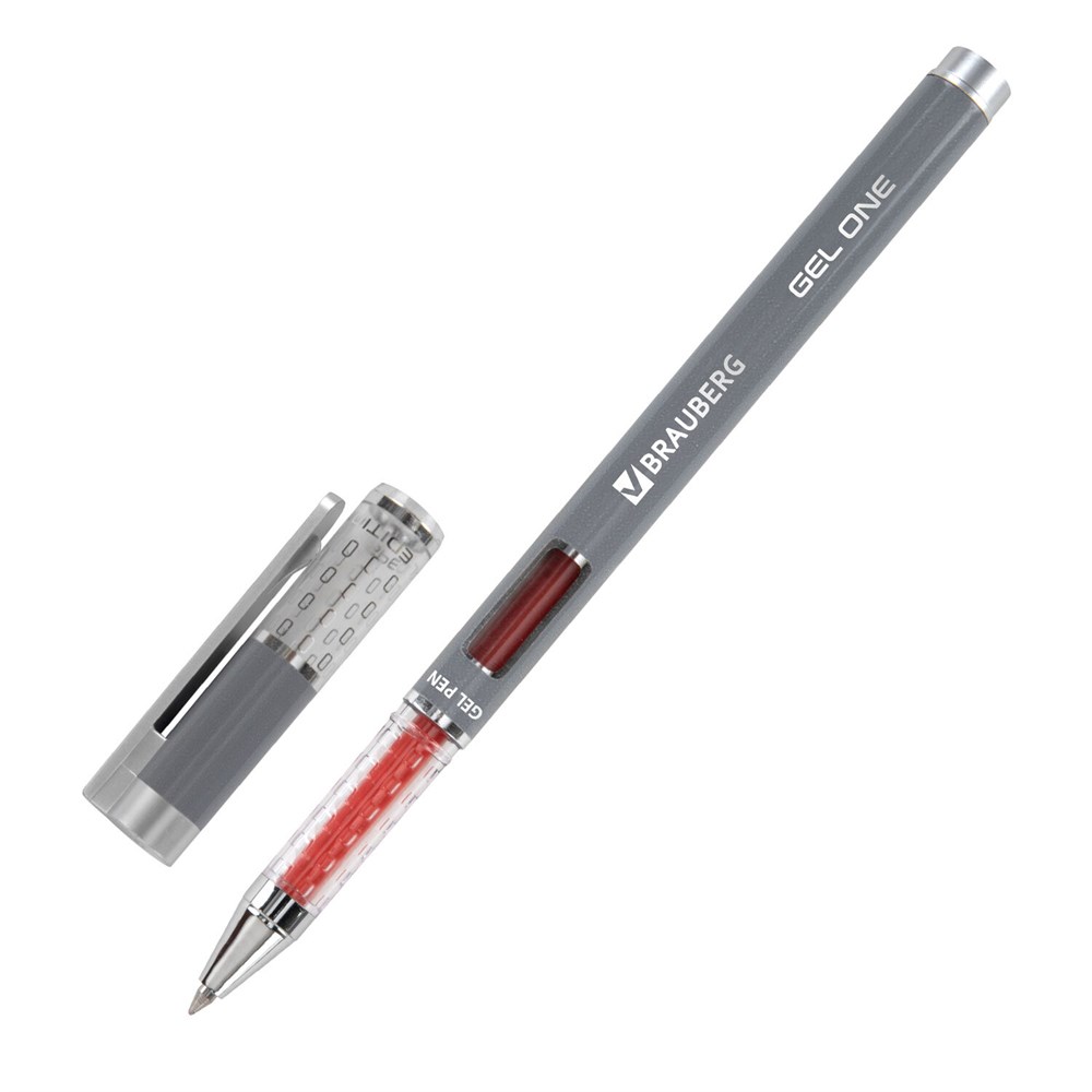 Ручка гелевая BRAUBERG "GEL ONE", КРАСНАЯ, стандартный узел 0,5 мм, линия письма 0,35 мм, 144038