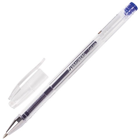 Ручка гелевая BRAUBERG "Jet", корпус прозрачный, толщина письма 0,5 мм, 141019, синяя
