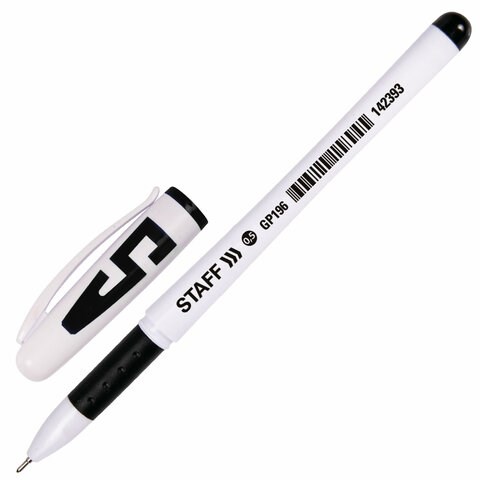 Ручка гелевая с грипом STAFF "Manager" GP-196, ЧЕРНАЯ, корпус белый, игольчатый узел 0,5 мм, линия письма 0,35 мм, 142393
