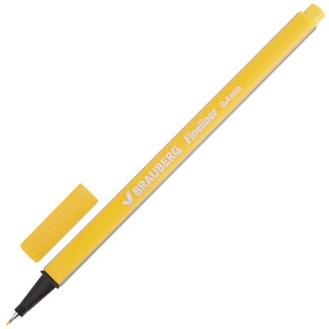 Ручка капиллярная (линер) BRAUBERG "Aero", ЖЕЛТАЯ, трехгранная, металлический наконечник, линия письма 0,4 мм, 142248