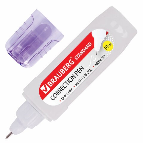 )Ручка-корректор BRAUBERG предназначена для точных исправлений текста на любых типах бумаги.