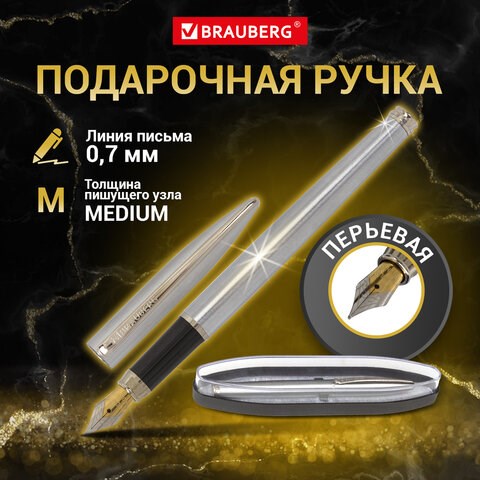 Ручка подарочная перьевая BRAUBERG "Ballet", СИНЯЯ, корпус серебистый с хромированными деталями, 143481