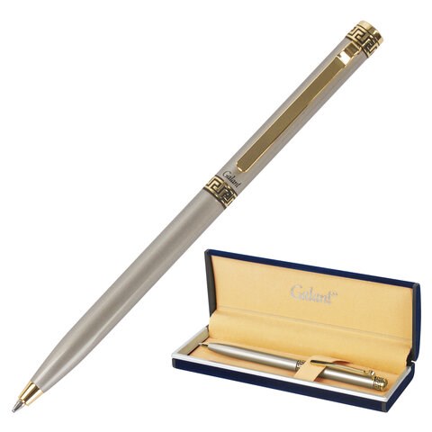 Ручка подарочная шариковая GALANT "Brigitte", тонкий корпус, серебристый, золотистые детали, пишущий узел 0,7 мм, синяя, 141009