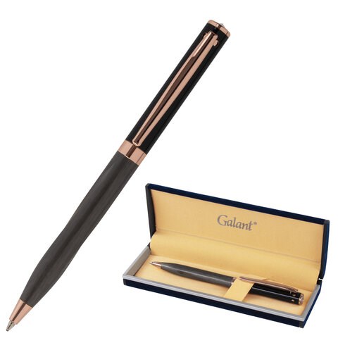 Ручка подарочная шариковая GALANT "FACTURA", корпус черный/оружейный металл, детали розовое золото, узел 0,7 мм, синяя, 143513