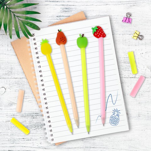 Ручка с топпером шариковая ЮНЛАНДИЯ "Фрукт", корпус ассорти, СИНЯЯ, пишущий узел 0,7 мм, 143810