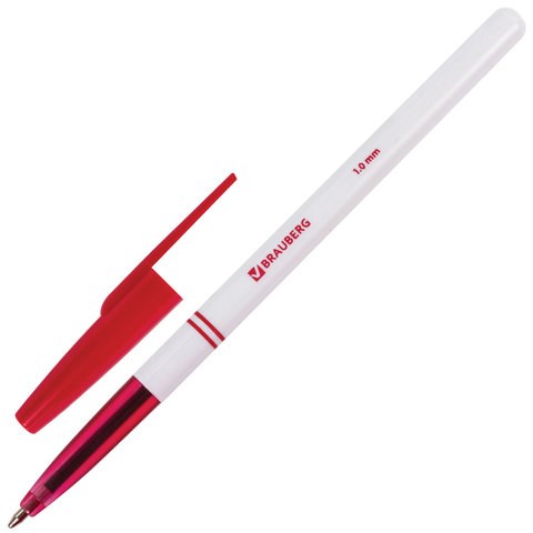 Ручка шариковая BRAUBERG Офисная, КРАСНАЯ, корпус белый, узел 1 мм, линия письма 0,5 мм, 140892
