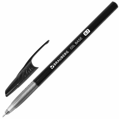 Ручка шариковая масляная BRAUBERG "Oil Base", ЧЕРНАЯ, корпус черный, узел 0,7 мм, линия письма 0,35 мм, 141635