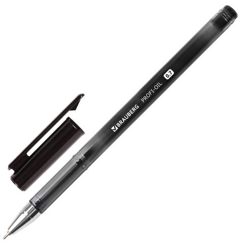 Ручка шариковая масляная BRAUBERG "Profi-Oil", ЧЕРНАЯ, корпус с печатью, узел 0,7 мм, линия письма 0,35 мм, 141633