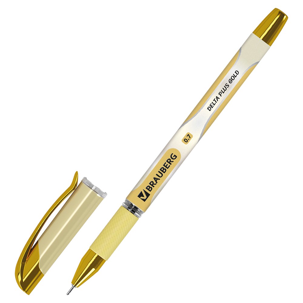 Шариковая масляная ручка с грипом BRAUBERG "Delta Plus Gold" – истинное воплощение стиля и функциональности!Шариковая масляная ручка с грипом BRAUBERG "Delta Plus Gold" представлена в насыщенном золотистом дизайне и динамичном, лаконичном корпусе, привлекая внимание и создавая ощущение премиальности в каждом штрихе.