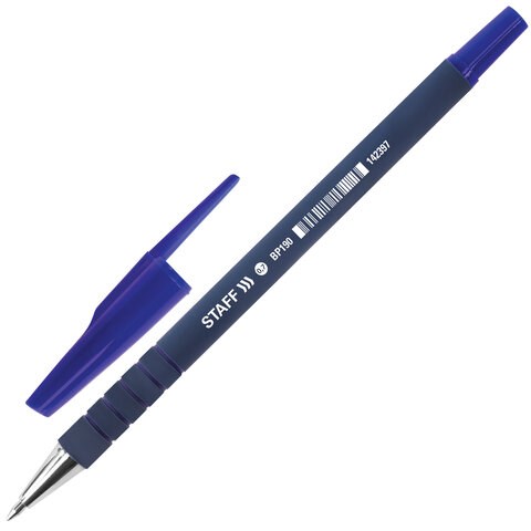 Ручка шариковая STAFF, корпус прорезиненный синий, узел 0,7 мм, линия письма 0,35 мм, синяя