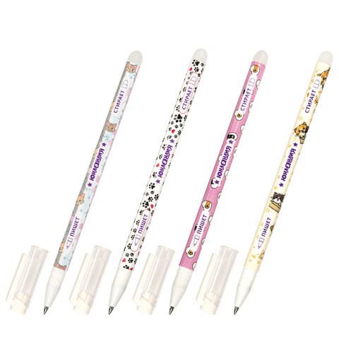 Ручка стираемая гелевая ЮНЛАНДИЯ Котята, СИНЯЯ, корпус ассорти, узел 0,5 мм, линия письма 0,35 мм, 143659