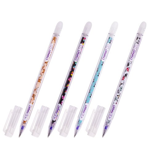 Ручка стираемая гелевая ЮНЛАНДИЯ "Щенята", СИНЯЯ, корпус ассорти, узел 0,5 мм, линия письма 0,35 мм,