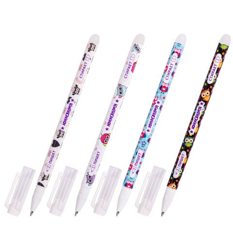 Ручка стираемая гелевая ЮНЛАНДИЯ "Совята", СИНЯЯ, корпус ассорти, узел 0,5 мм, линия письма 0,35 мм,