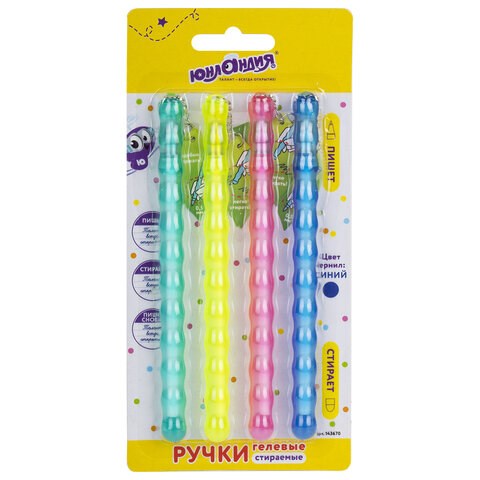 )Ручки ЮНЛАНДИЯ «Горошек» необычной формы пишут специальными гелевыми чернилами, которые становятся невидимыми при нагревании. Нагрев достигается ластиком, встроенным в корпус ручки. Возможность многократного стирания.