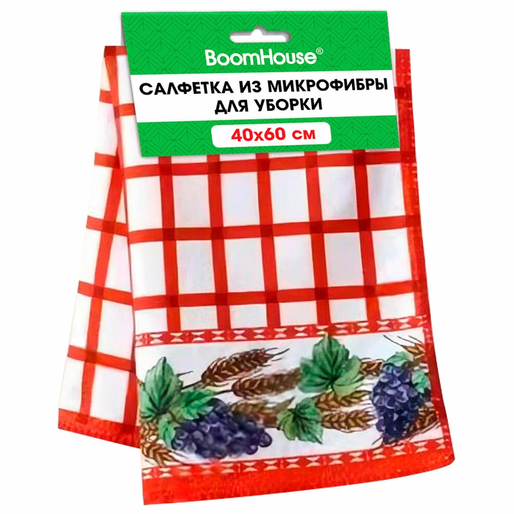 Салфетка из МИКРОФИБРЫ универсальная 40 х 60 см, красная клетка, орнамент, 240 г/м2, BOOMHOUSE, 700880