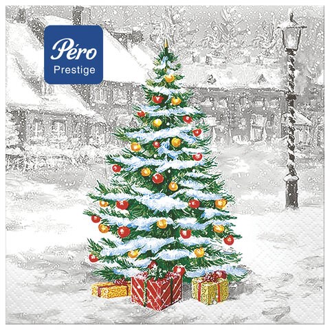 Салфетки бумажные 20 шт., 33х33 см, "Белая зима", 3-слойные, PERO "Prestige", 3125