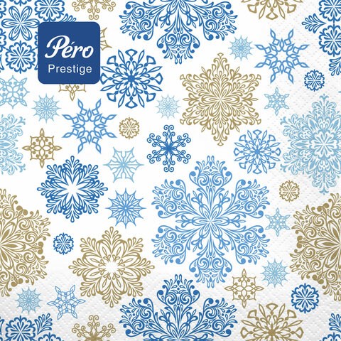 Салфетки бумажные 20 шт., 33х33 см, "Вальс снежинок", 3-слойные, PERO Prestige, 1061