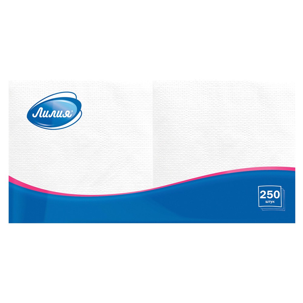 Салфетки бумажные 250 шт., 24х24 см, ЛИЛИЯ, белые, 100% целлюлоза