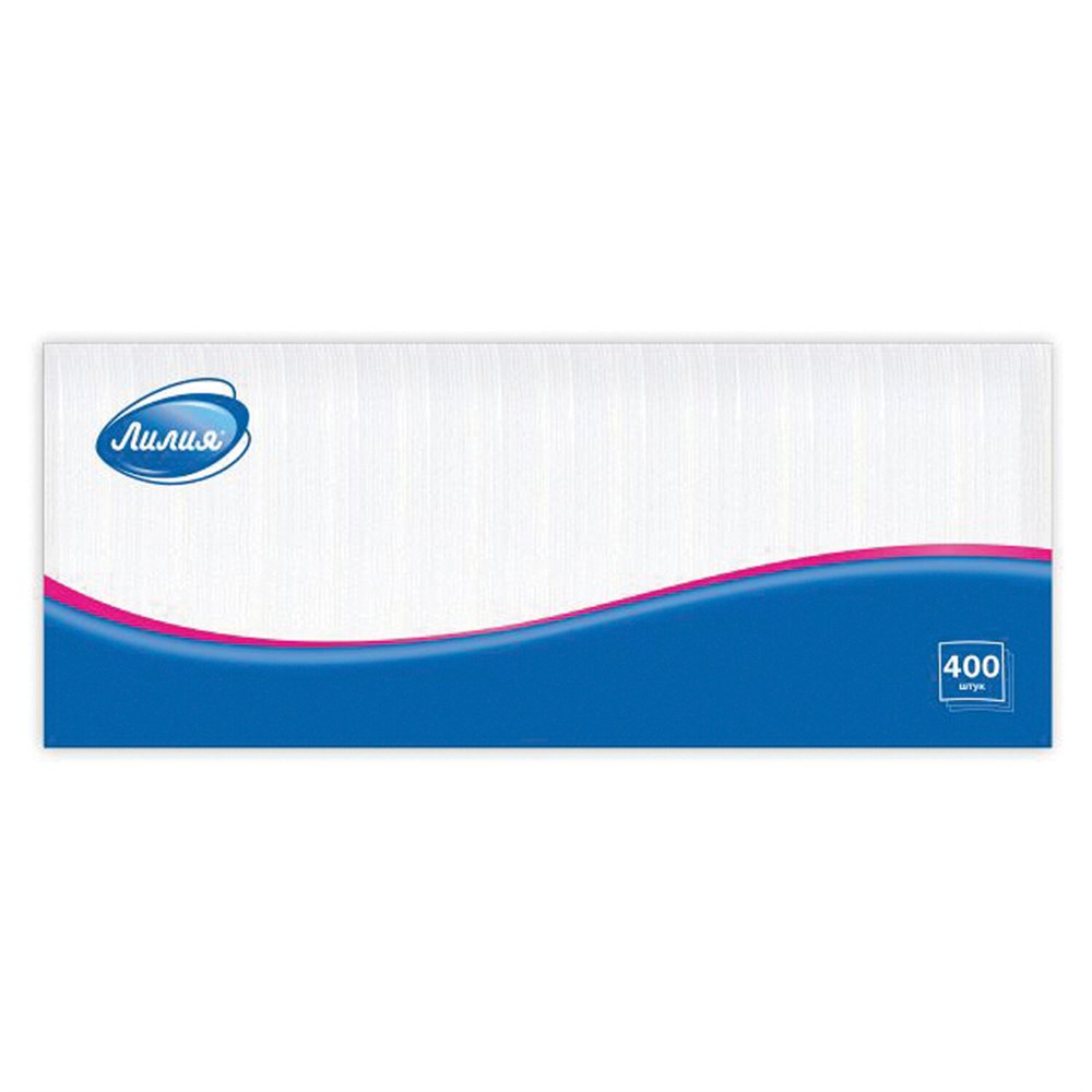 Салфетки бумажные 400 шт., 24х24 см, ЛИЛИЯ, белые, 100% целлюлоза