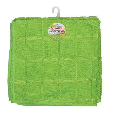 Салфетки из МИКРОФИБРЫ универсальные 40х40 см, КОМПЛЕКТ 3 шт., КЛЕТКА, зеленые, 220 г/м2, ЛЮБАША, 603948
