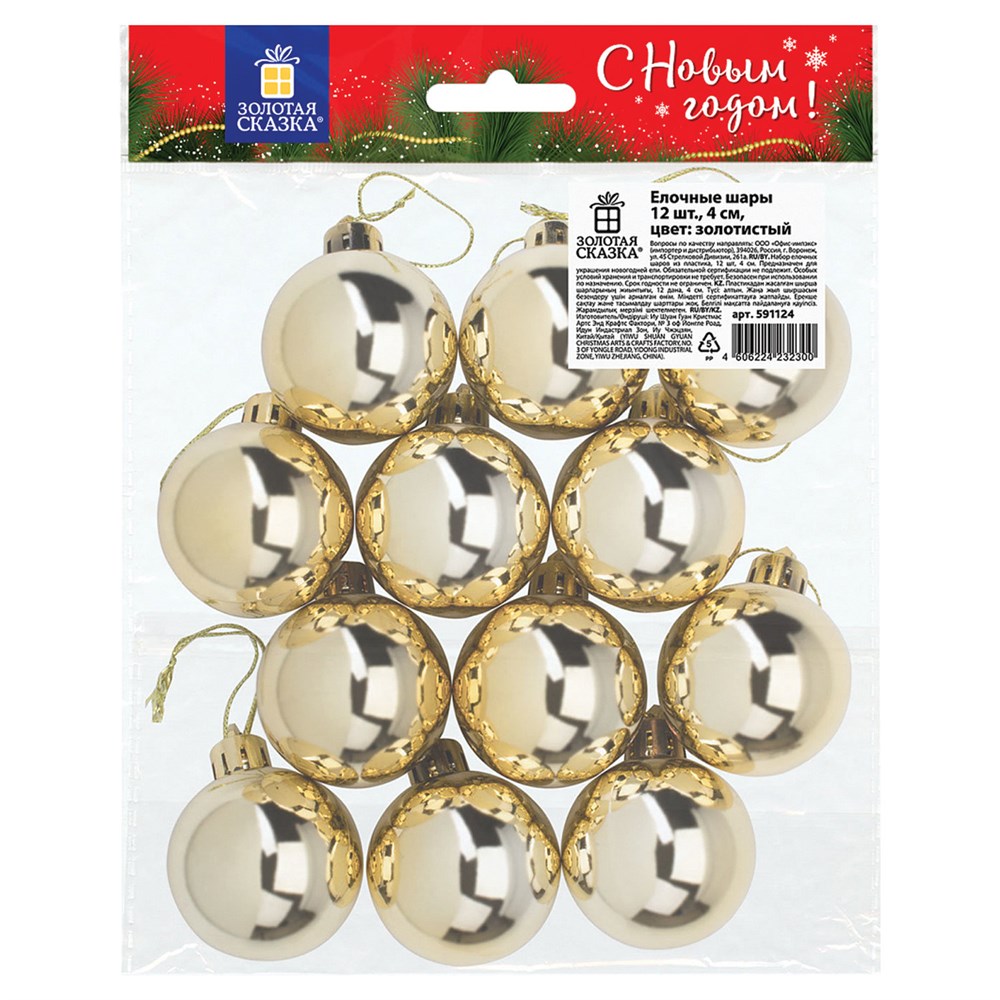 Шары ёлочные 12 шт., 4 см, "Solid Color", пластик, ЗОЛОТИСТЫЕ, глянец, ЗОЛОТАЯ СКАЗКА, 591124