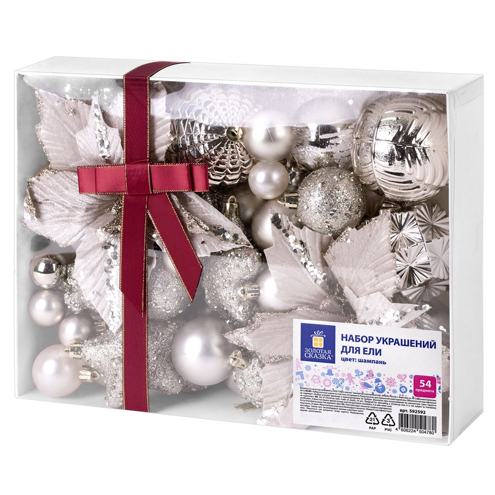 Шары елочные НАБОР 54 предмета "Light Champagne Style", пластик, шампань, ЗОЛОТАЯ СКАЗКА, 592592
