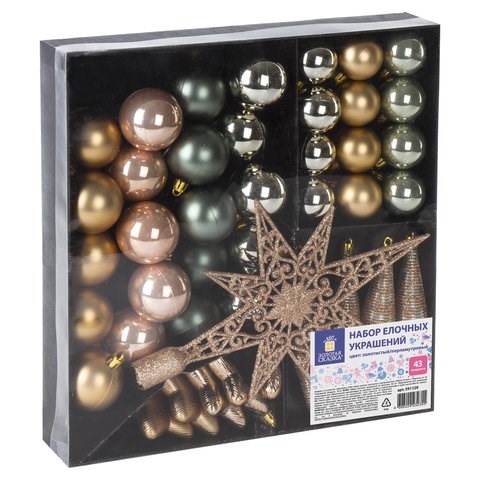 Шары новогодние ёлочные Pearl River НАБОР 43 предмета, пластик, золото/перламутр, ЗОЛОТАЯ СКАЗКА, 591129