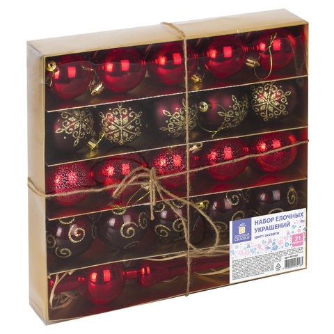 Шары новогодние ёлочные Red Wine НАБОР 21 предмет, пластик, красный, ЗОЛОТАЯ СКАЗКА, 591107