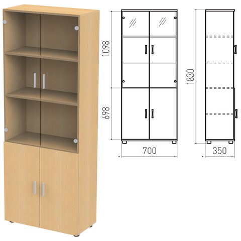 Шкаф закрытый со стеклом "Канц" 700х350х1830 мм,