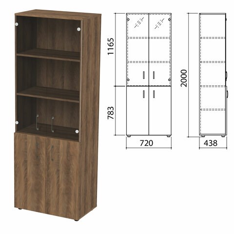 Шкаф закрытый со стеклом "Приоритет" 720х438х2000 мм, 4 полки, лагос (КОМПЛЕКТ)