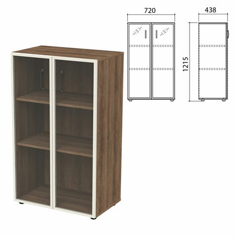 Шкаф закрытый со стеклом в алюминиевой рамке "Приоритет" 720х438х1215 мм, 2 полки, лагос (КОМПЛЕКТ)