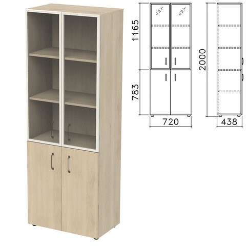 Шкаф закрытый со стеклом в алюминиевой рамке "Приоритет" 720х438х2000 мм