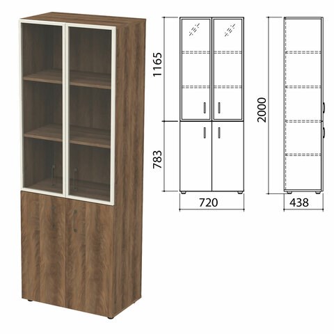 Шкаф закрытый со стеклом в алюминиевой рамке "Приоритет" 720х438х2000 мм, 4 полки, лагос (КОМПЛЕКТ)