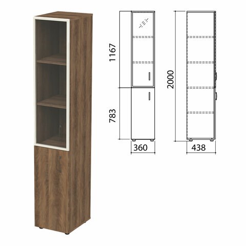 Шкаф закрытый со стеклом в алюминиевой рамке "Приоритет" левый, 360х438х2000 мм, 4 полки, лагос (КОМПЛЕКТ)