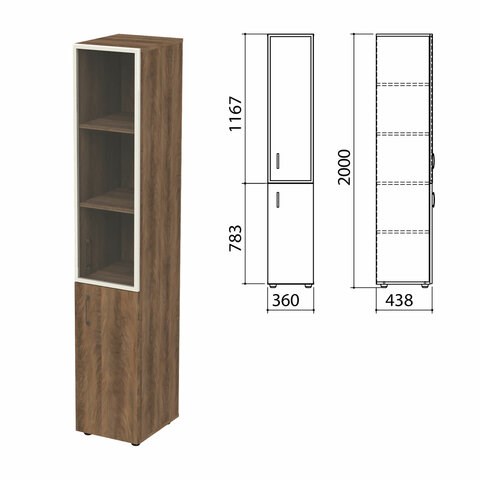 Шкаф закрытый со стеклом в алюминиевой рамке "Приоритет" правый, 360х438х2000 мм, 4 полки, лагос (КОМПЛЕКТ)