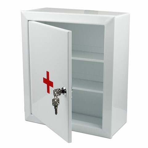 Шкафчик-аптечка металлический Призма, навесной, 2 полки, ключевой замок, 330x280x140 мм