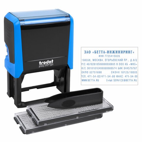 Штамп самонаборный 8-строчный, оттиск 60х40 мм, синий без рамки, TRODAT 4927/DB, КАССЫ В КОМПЛЕКТЕ, 4957