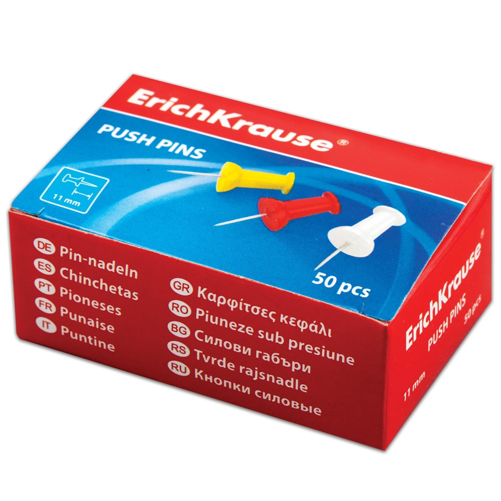 Канцелярские кнопки ERICH KRAUSE надежно крепят бумагу на пробковые, фетровые и другие поверхности.Цветные силовые кнопки с пластиковыми шляпками и игольчатыми ножками из высокопрочной стальной проволоки. Подходят для многократного использования. Не ржавеют и не оставляют следов на бумаге.