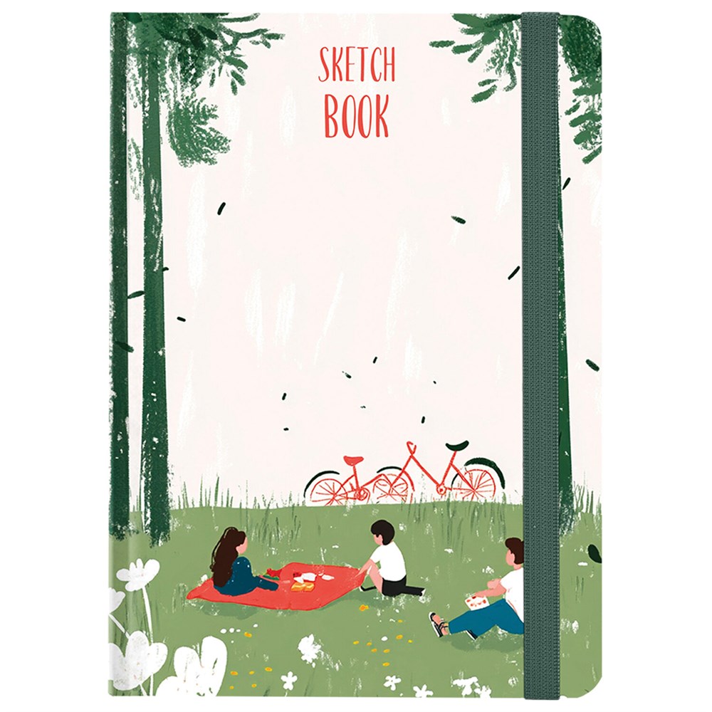 Скетчбук, белая бумага 120 г/м2, 145х203 мм, 80 л., резинка, твердый, BRAUBERG ART, "Прогулка", 116896